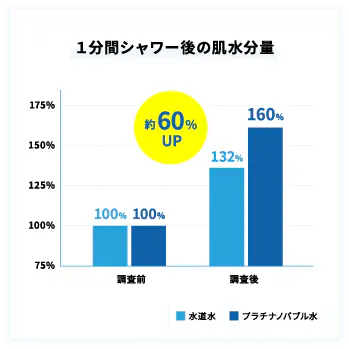 【測定条件】腕を洗顔料で洗浄後、20℃±1℃の室内で15分順化。シャワーを前腕部内側に1分間当てた後、肌水分量を測定した。