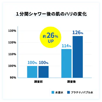 【測定条件】腕を洗顔料で洗浄後、20℃±1℃の室内で15分順化。シャワーを前腕部内側に1分間当てた後、肌弾力値を測定した。