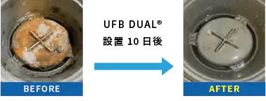 個人宅にUFB DUAL PLUSを導入し、10日間のプラチナバブル™︎水の使用でキッチン排水口の汚れを効果的に落とせました。