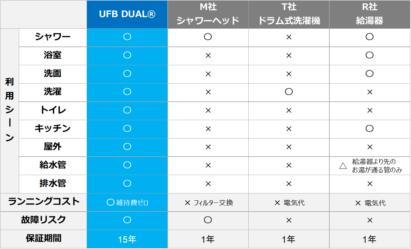 UFB DUAL PLUSなら、シャワーヘッドや洗濯機だけでなく、お家全体をリーズナブルな価格でプラチナノバブル™水に変えることができます。